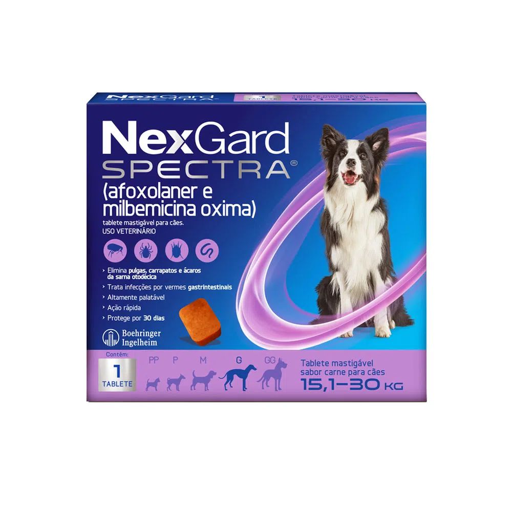 NexGard Spectra Antipulgas e Vermífugo Cães 15,1kg a 30kg 1 tablete