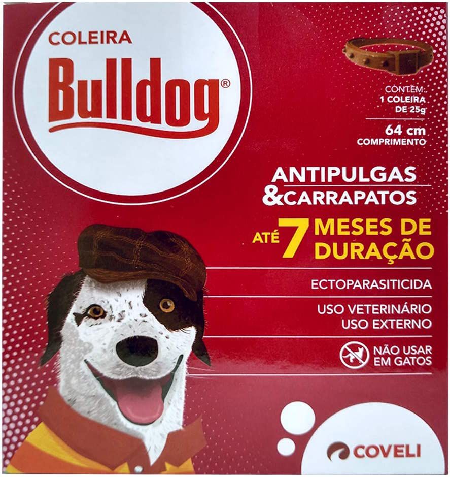 A Coleira para Cães Antiparasitária Coveli Bulldog Até 7 Meses de Duração age com muita eficiência contra pulgas e carrapatos,e tem diversos benefícios como sua ação prolongada,não é preciso retirá-la para dar banho no pet e possui um tamanho ideal para cães médios e grandes.