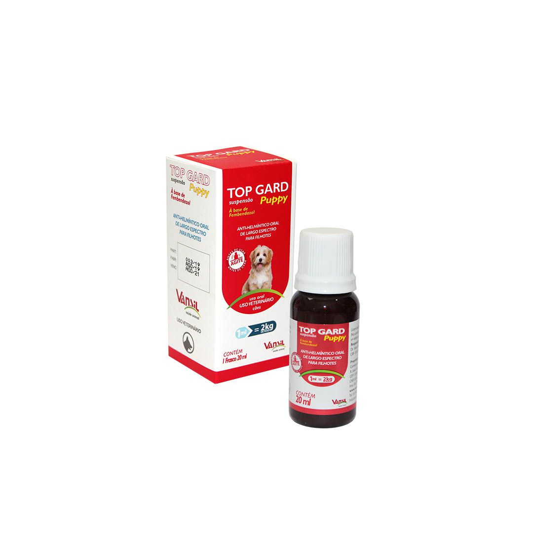 O Top Gard Puppy Para Cães Vansil 20 ml é um medicamento anti-helmíntico eficaz no combate de parasitas intestinais como:Ascilostomídeos (Ancylostoma caninum),Ascarídeos (Toxocara canis e Toxocara leonina) e Cestódeos (Taenia pisiformes),que podem atingir cachorros filhotes.